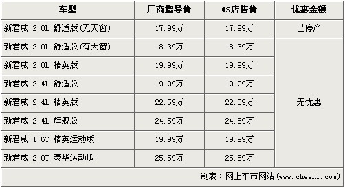 新君威自去年年底上市以来凭借动感的外形设计,以及精准的操控驾感揽获了无数消费者的放心。9月2日,首次搭载国内第一款“黄金排量”涡轮增压车型的别克1.6T也悄然上市,售价为19.99万元,再次壮大了新君威的队伍。今日据了解,全系入门级无天窗的2.0L舒适版已经停产,具体车型价格请看下表: