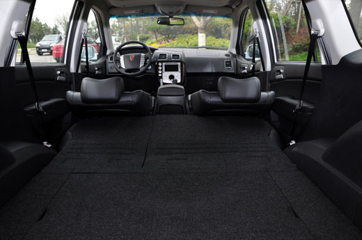 大容量是SUV车型的一大特点,在荣威W5身上也有很好的体现,4676×1888×1765mm的车身尺寸以及2740mm的超纵深轴距,都赋予了驾乘人员充裕的空间;后排座椅可以完全放平,从而获得1146L超大行李容积;而在行李箱盖板下,有着大小不同的储物盒,方便分类放置物品,备胎则被放在了车架下面。